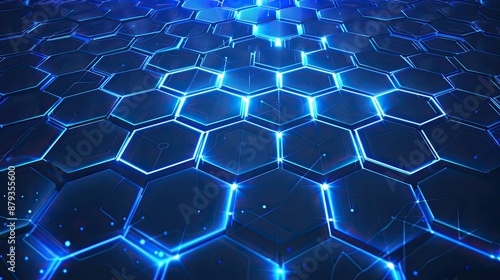 Vector illustrations of Bright glowing blue hexagonal and circuit network pattern digital hi tech background