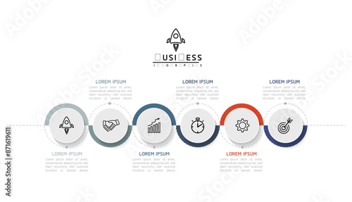 Vector infographic business presentation template with circular interconnection with 6 options.