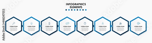 Vector Infographic design illustration business template with icons and 8 options or steps. Can be used for process diagram, presentations, workflow layout, banner, flow chart, info graph