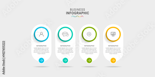 Vector Infographic long circle label, infographic with number 4 options processes.