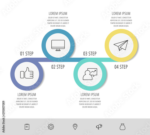 Vector infographic template circles for four paper label, diagram, graph, presentation. Business concept with 4 options. Blank space for content, step for step, timeline, workflow, marketing, web