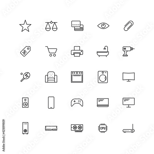 Vector linear set of icons for online store, website and application development