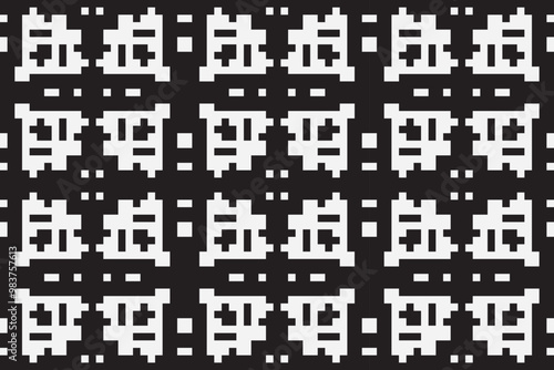 Vector monochrome pixel background. Abstract seamless pattern with small random scattered squares, rectangles, tiny dots. Black and white minimal