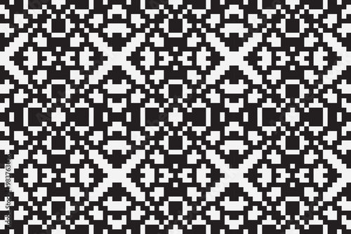 Vector monochrome pixel background. Abstract seamless pattern with small random scattered squares, rectangles, tiny dots. Black and white minimal