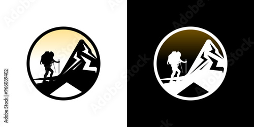 Vector of adventurer person or adventurer icon. Vector of a person climbing a mountain.