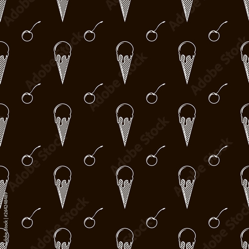 Vector outline ice cream and cherry seamless pattern