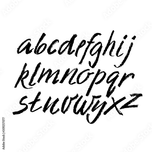 Vector Pastel or Charcoal Style Hand Drawn Alphabet Font. Calligraphy alphabet on a white background
