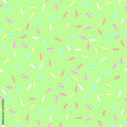 vector Seamless background with green donut glaze. Decorative bright sprinkles texture pattern design