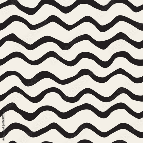 Vector Seamless Black and White Hand Drawn Wavy Lines Pattern