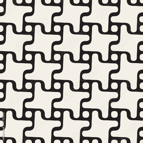 Vector Seamless Black and White Rounded Line Swirl Cross Circle Pattern