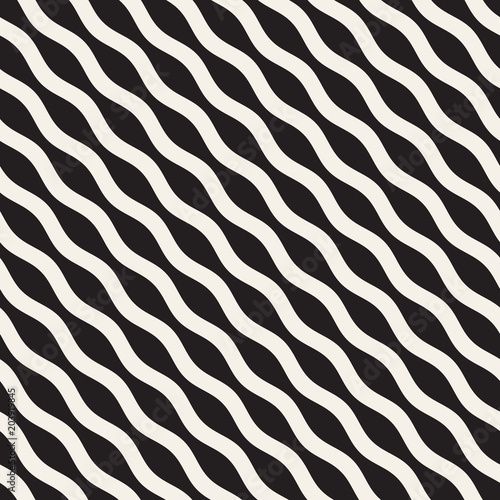 Vector seamless black and white wavy lines pattern. Abstract geometric background design.