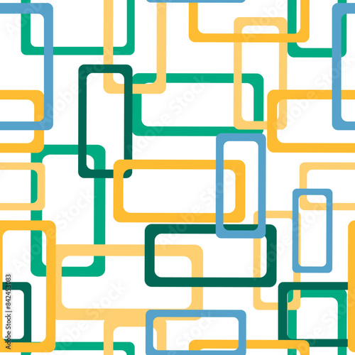 Vector seamless geometric minimalist pattern. Colorful overlapping squares and rectangles.