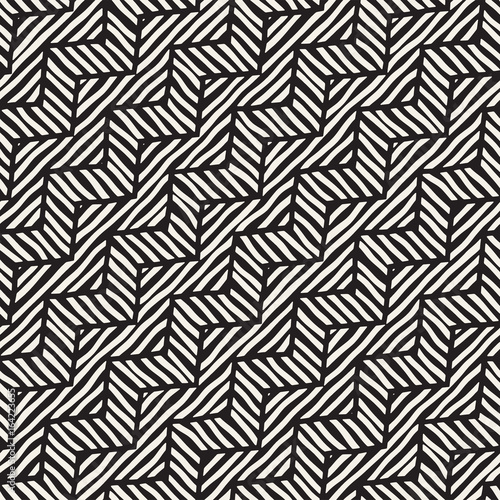 Vector seamless hand drawn pattern. Zigzag and stripe rough lines. Tribal design background. Ethnic doodle texture.