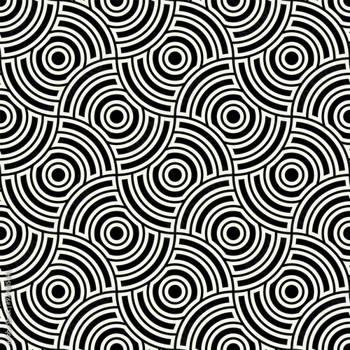 Vector seamless pattern. Geometric bold ornament. Stylish monochrome background. Bold repeating texture. Striped concentric elements.