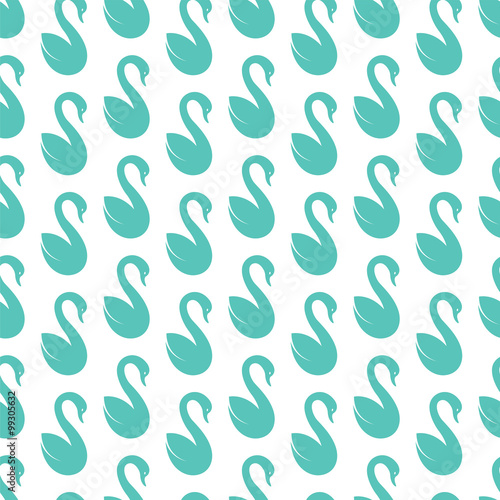 Vector seamless pattern with blue swan on white background. wall
