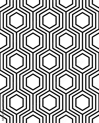Vector seamless texture. Modern abstract background. Monochrome geometrical pattern with hexagons.