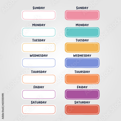 Vector set calendar, days of the week - Sunday, Monday, Tuesday, Wednesday, Thursday, Friday, Saturday.