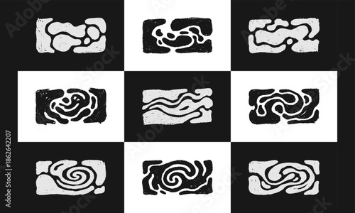 Vector Set of 9 Grunge Hand-Drawn Abstract Organic Shapes and Wavy Patterns