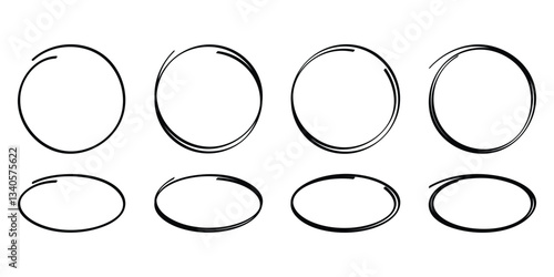 Vector set of hand drawn circular scribbles. Doodle style round circles for message notes, graffiti bubbles, or design elements.