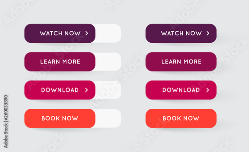 Vector Set of Modern Flat App or Game Buttons. Trendy flat colors with shadows.
