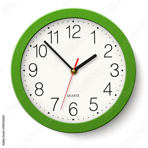 Vector simple classic green round wall clock isolated on white