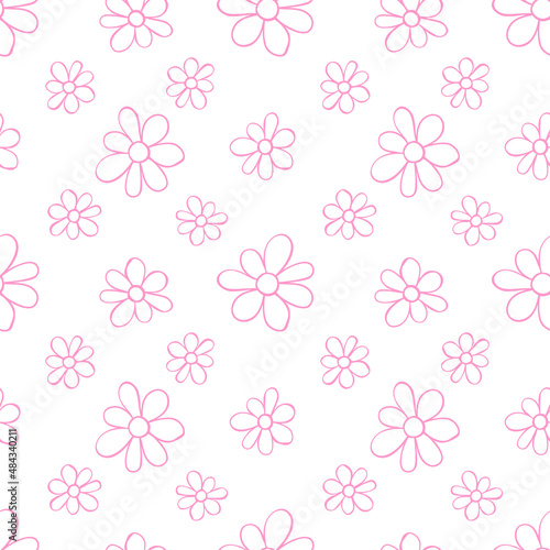 Vector simple primitive floral seamless pattern. Cute endless print with flowers drawn by hand. Sketch, doodle, scribble