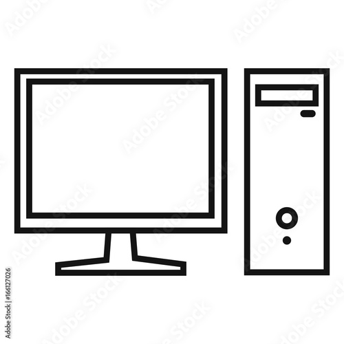 Vector Single Black Outline Icon - Monitor and System Unit