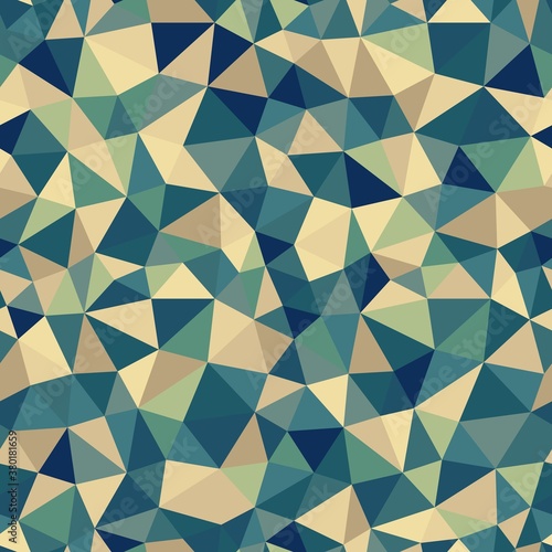 Vector trendy low poly seamless pattern. Teal and beige polygonal background