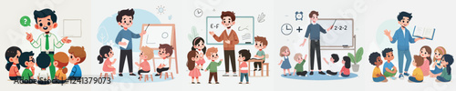 vector young man teaching little child