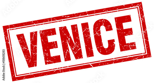 Venice red square grunge stamp on white