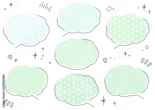 水彩のふわふわかわいい柄吹き出し 緑色Ver