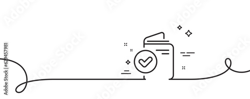 Verification document line icon. Continuous one line with curl. Accepted passport sign. Approved symbol. Verification document single outline ribbon. Loop curve pattern. Vector