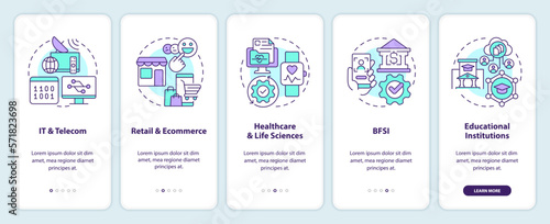 Version control system end user industry onboarding mobile app screen. Walkthrough 5 steps editable graphic instructions with linear concepts. UI, UX, GUI template. Myriad Pro-Bold, Regular fonts used