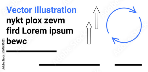 Vertical arrows indicate upward movement next to text elements with lines and a circular arrow indicating loop. Ideal for workflow, presentations, infographics, reports, tutorials, websites