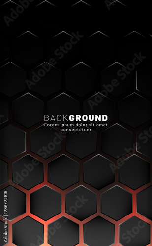 Vertical hexagon background. Gradient color light pattern with dark background technology style. Honeycomb. Vector illustration of light.