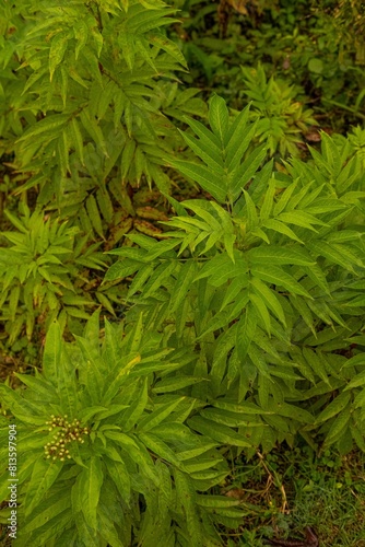 Vertical shot of a danewort (Sambucus ebulus) plant growing in the forest