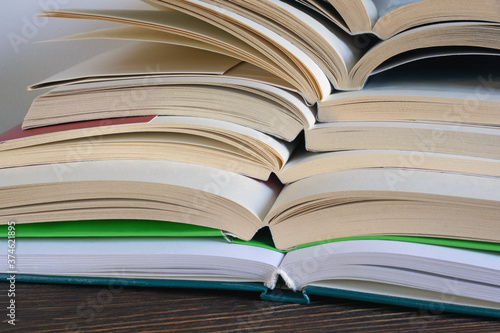 Vertical stack of open books