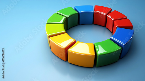 Vibrant 3D circular progress bar with multiple colorful segments and smooth gradient transitions. Modern digital design ideal for UI dashboards, data visualization, and tech presentations with space f