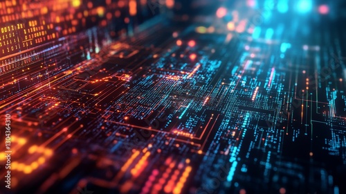 Vibrant Abstract Canvas of Binary Code and Circuit Patterns