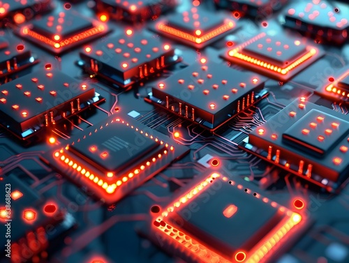 Vibrant Abstract Computer Chip with Geometric Shapes and Patterns