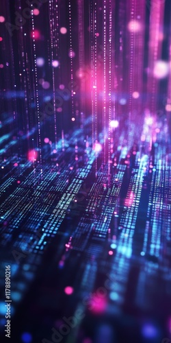 Vibrant Abstract Data Patterns in a Digital Background with Colorful Lights and Information Flowing