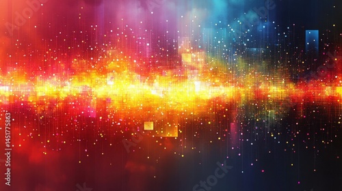 Vibrant abstract digital background with colorful particles and light effects creating depth
