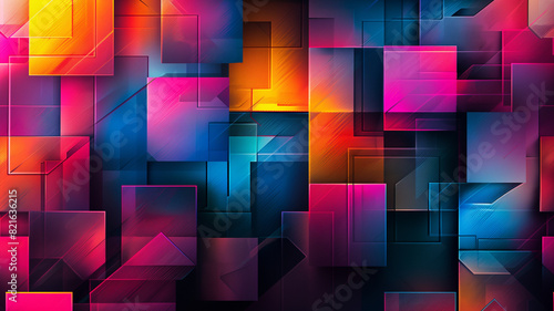 Vibrant abstract geometric background with colorful overlapping squares and rectangles, creating a dynamic and modern visual effect.