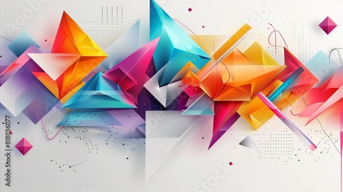 Vibrant Abstract Geometric Shapes Composition with Dynamic Colors on White Background