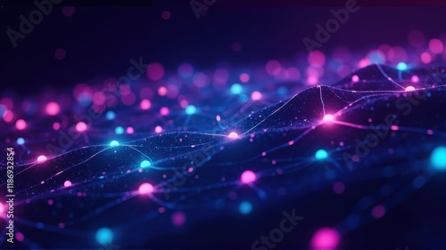 Vibrant Abstract Network Visualization with Glowing Particles and Interconnected Lines Representing Data Flow in Artificial Intelligence Systems
