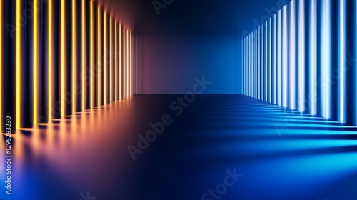 Vibrant abstract space with illuminated columns casting shadows in a modern setting