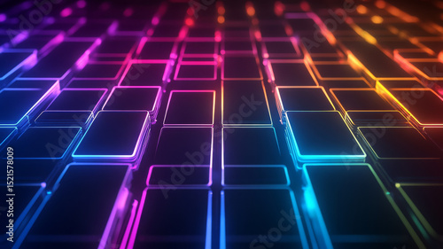 Vibrant and colorful abstract background featuring glowing rectangular shapes grid pattern