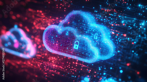 Vibrant and modern digital security icons in the shape of clouds with lock symbols representing data protection network encryption access control and cyber safety concepts
