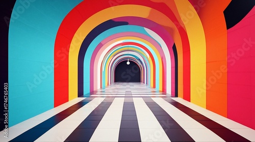 Vibrant arched tunnel with striped flooring