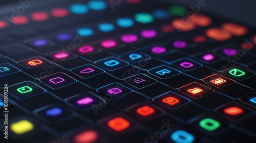 vibrant array of colorful icons on dark background, showcasing modern digital interface with various symbols and functions. glowing colors create dynamic and engaging visual experience